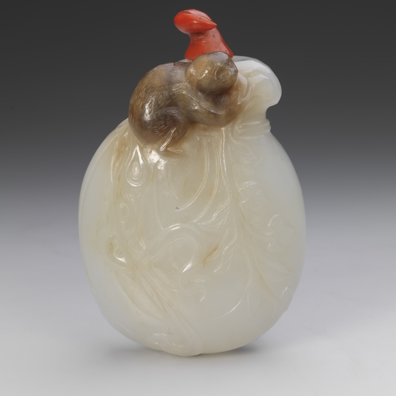 A rebus functions by using images whose spoken names sound like other meaningful words or phrases. For example, a bat frequently appears on snuff bottles not for its literal form, but because the word for bat (fu) is a homophone for “good fortune.” When combined with other motifs—such aspeaches, coins, or clouds—the imagery forms compound messages wishing prosperity, longevity, or success. These meanings were immediately legible to contemporary viewers familiar with the language and conventions.