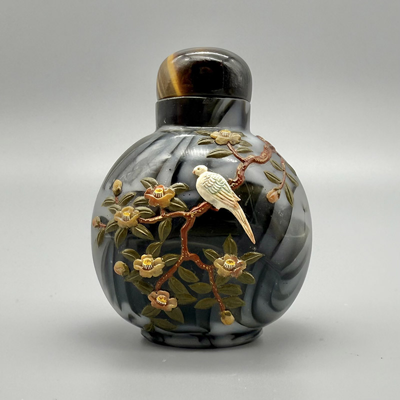 Importantly, symbolism is not limited to surface decoration. Material choice, color, and even natural inclusions within stone bottles can carry meaning or be interpreted symbolically. Collectors and scholars often study these elements together, considering how imagery, material, and craftsmanship interact to create a coherent visual statement. Understanding symbolism and rebuses enriches appreciation of snuff bottles beyond their craftsmanship alone. It reveals how these small objects functioned as intimate carriers of meaning, capable of expressing identity, intention, and cultural values in a highly condensed form.